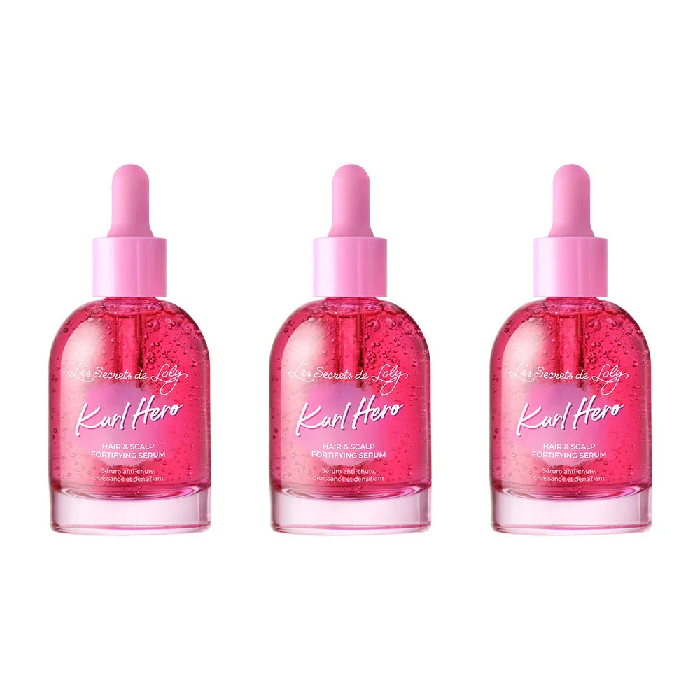 Le sérum Kurl Hero, spécifiquement formulé pour les personnes aux cheveux texturés, est conçu pour agir sur la chute réactionnelle.